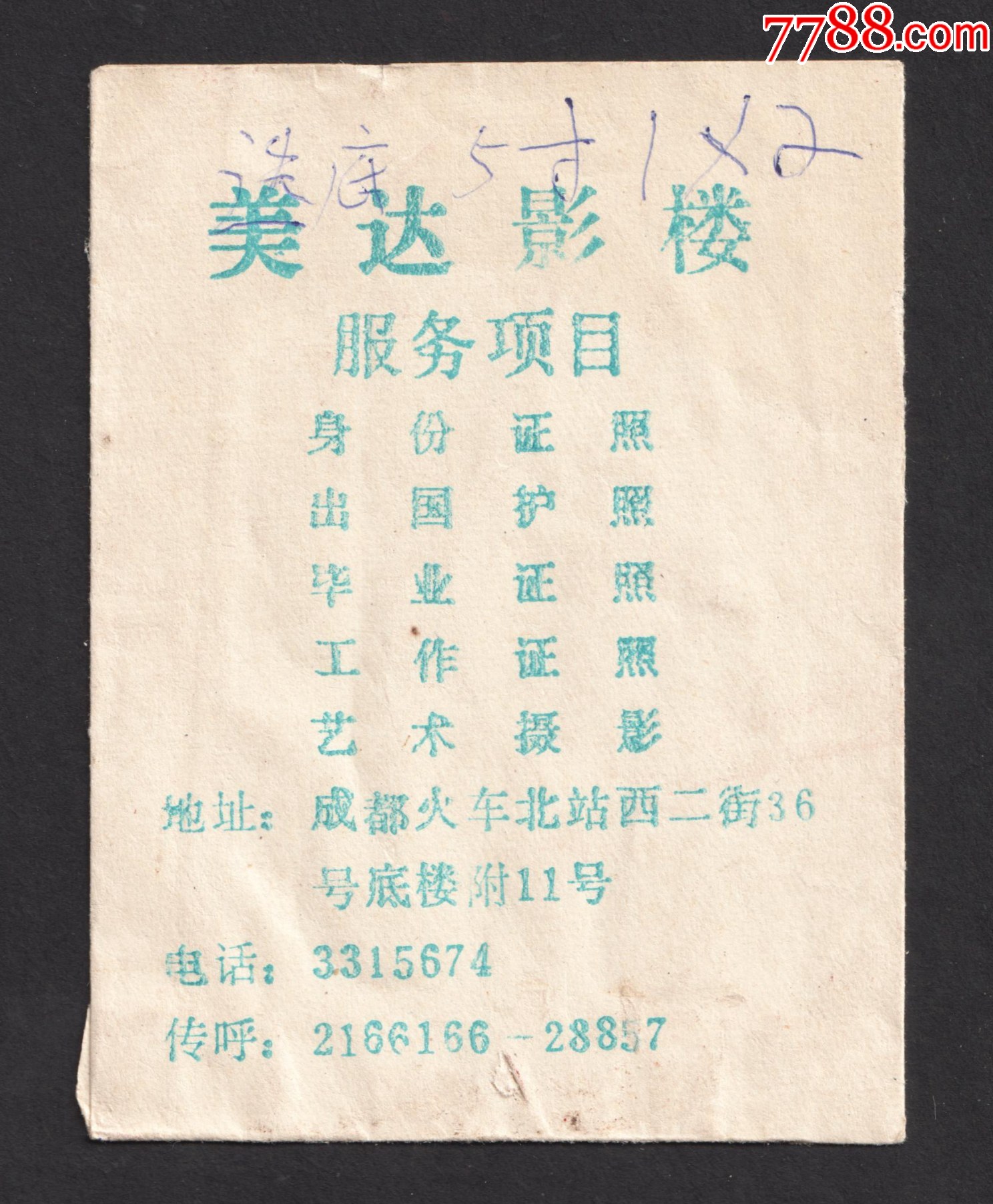 九十年代,成都火车北站美达影楼照相馆底片袋-se111292985