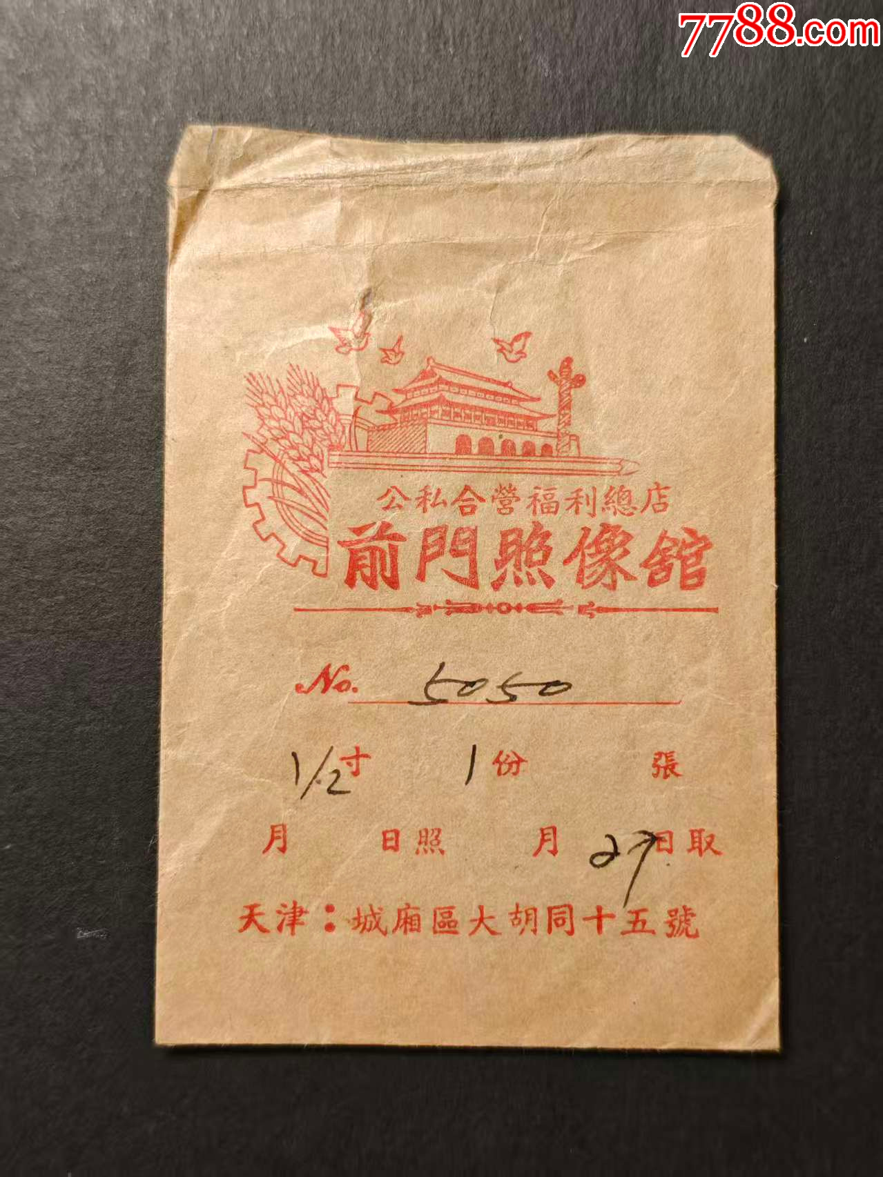 老照相馆;相片袋(照片袋)公私合营福利总店前门照相馆(天津城厢区大胡同)有毛语录-se111322412