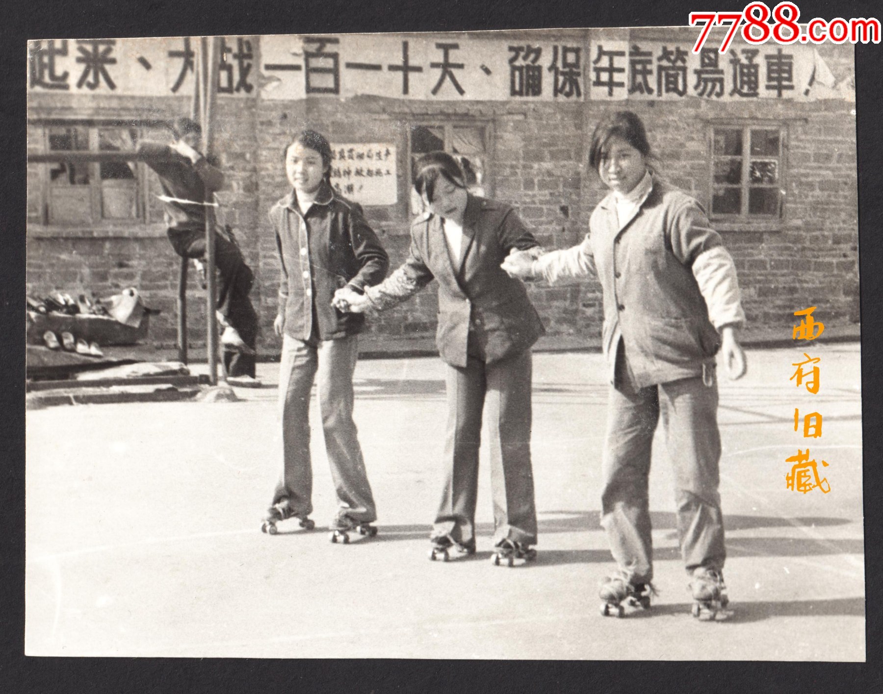八十年代老照片,三个滑旱冰的铁路局女孩儿-se111327328
