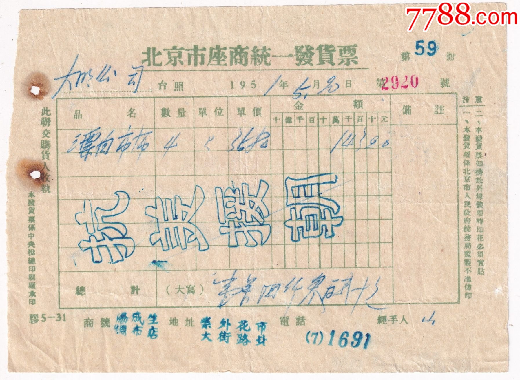 1951年,北京市发票三张,加盖“抗美援朝”宣传语(se109658633)
