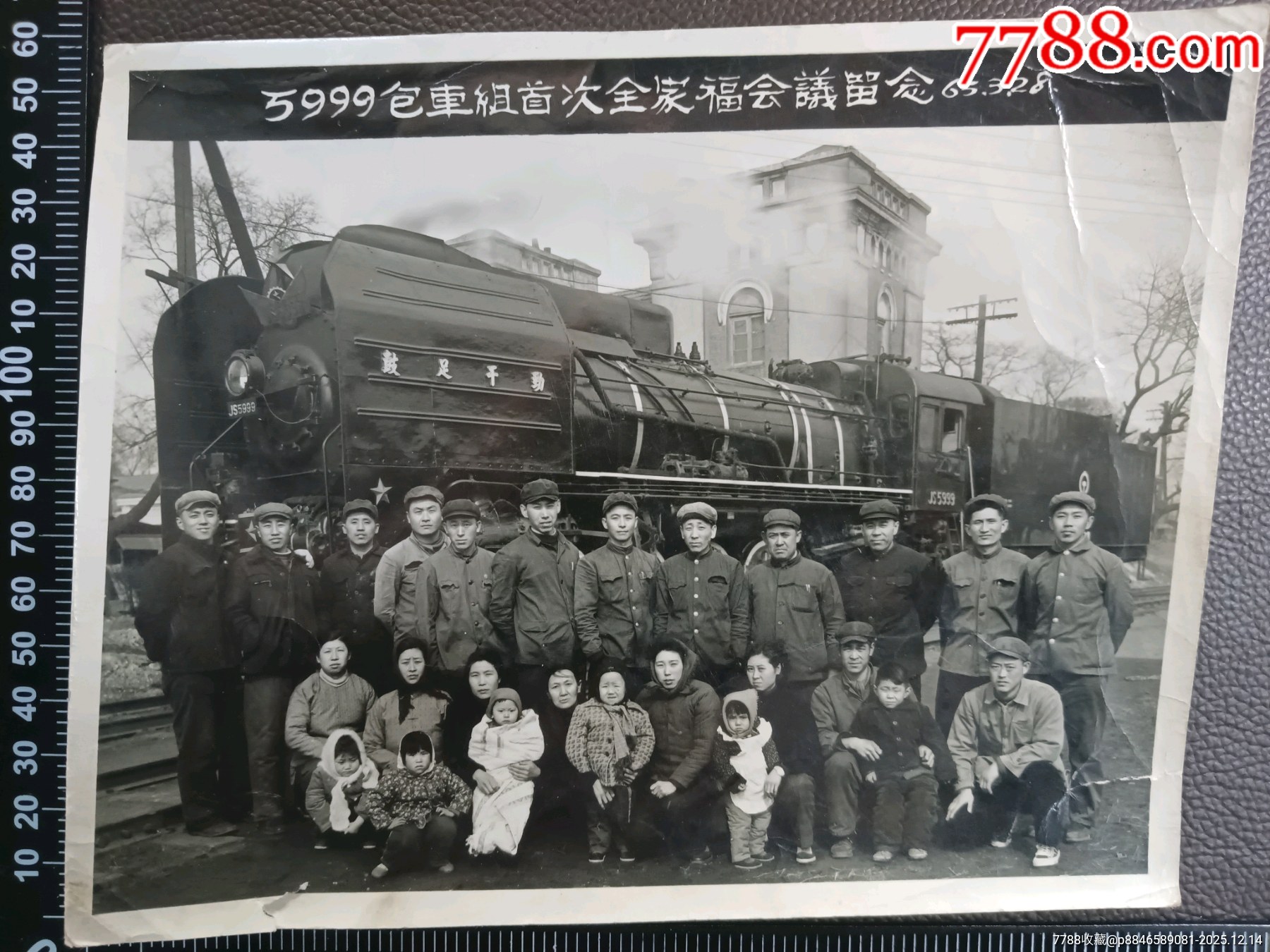 5999包车组全家福大幅老照片1965年(燃气机车,铁路工人、家属齐聚)(se109844040)